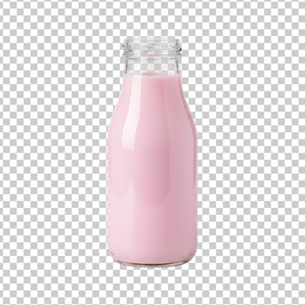 Clear Glass Bottle with Fresh Pink Strawberry Smoothie PNG Transparent Background