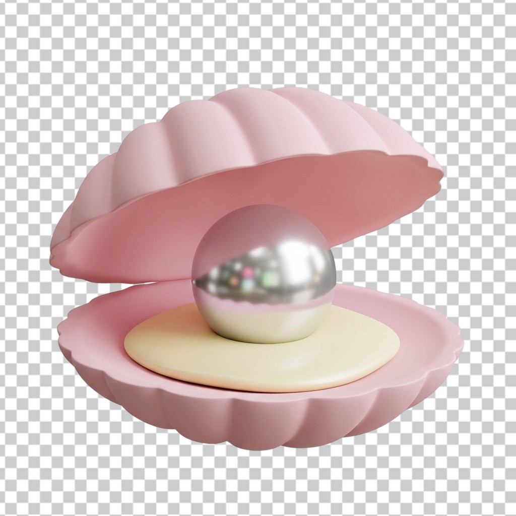 Elegant 3D Pearl in Pink Seashell PNG Transparent Background