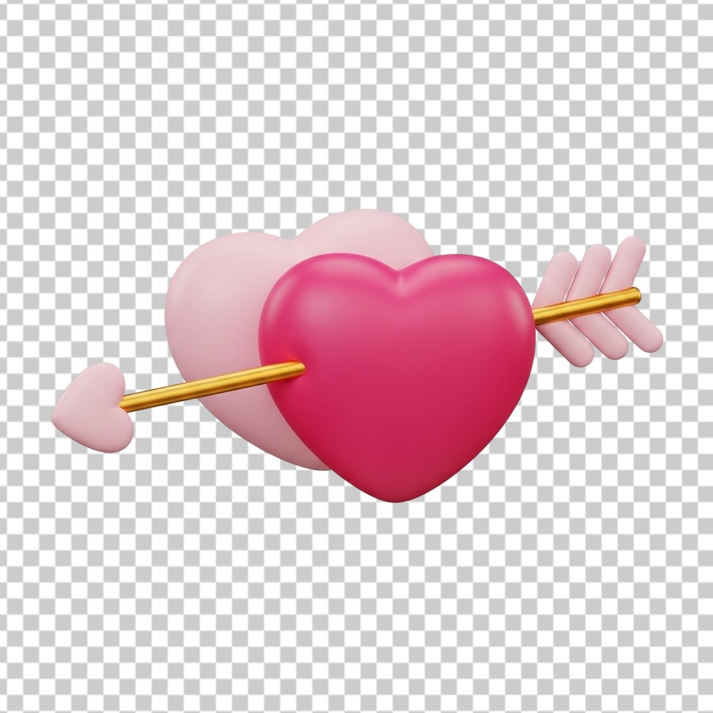 3D Pink Heart Pierced by Cupid's Arrow PNG Transparent Background