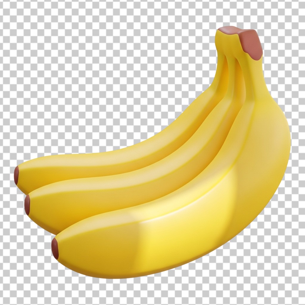 3D Bunch of Three Ripe Yellow Bananas PNG Transparent Background