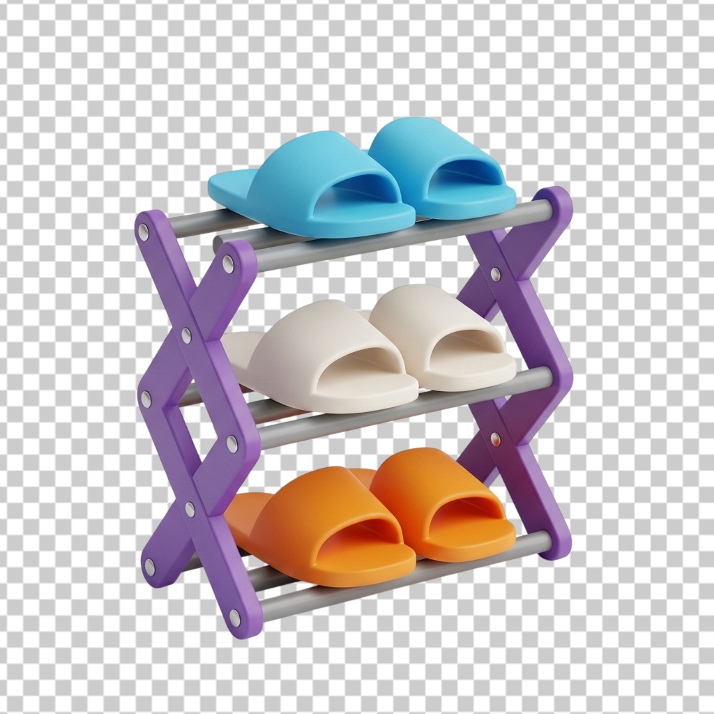 Modern Shoe Rack with Three Pairs of Slippers PNG Transparent Background