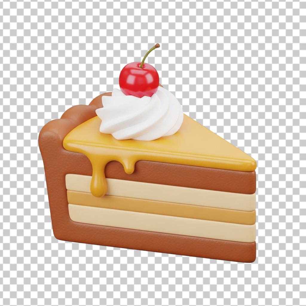 3D Slice of Chocolate Toffee Cake with Whipped Cream PNG Transparent Background