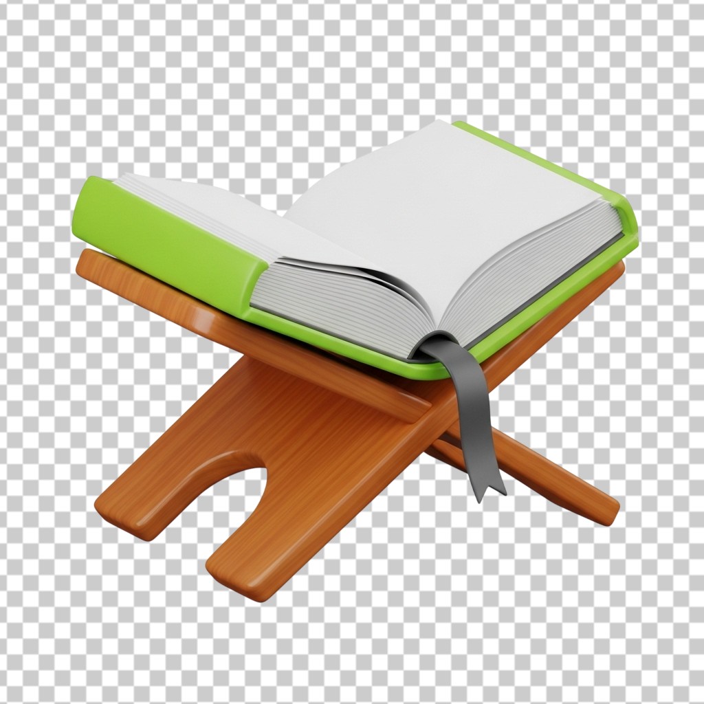 3D Open Book Resting on a Wooden Stand for Education PNG Transparent Background