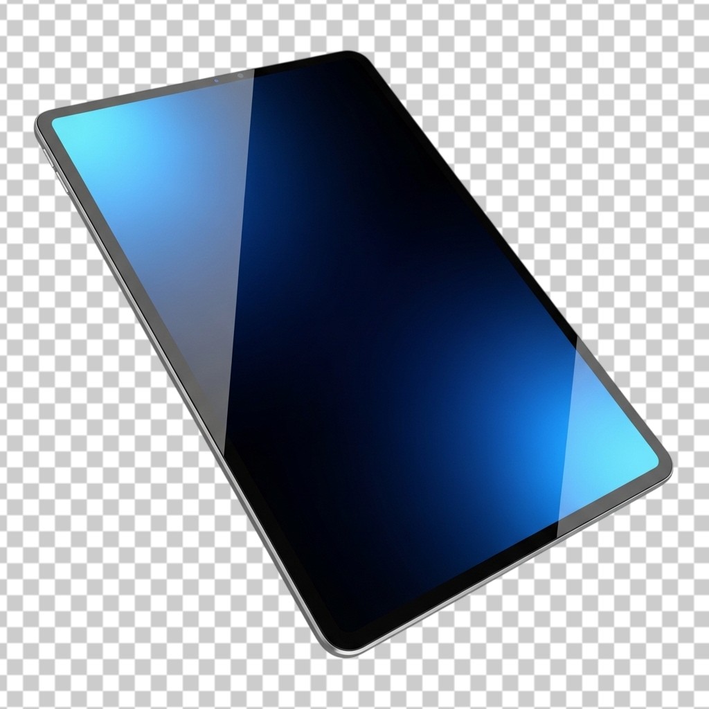 Modern Slim Black Tablet Computer with Glowing Screen PNG Transparent Background