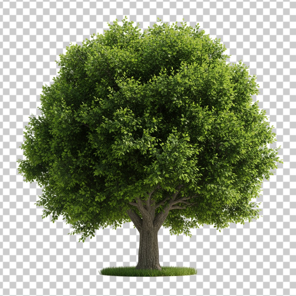 Large Lush Green Tree with Detailed Leaves and Trunk PNG Transparent Background