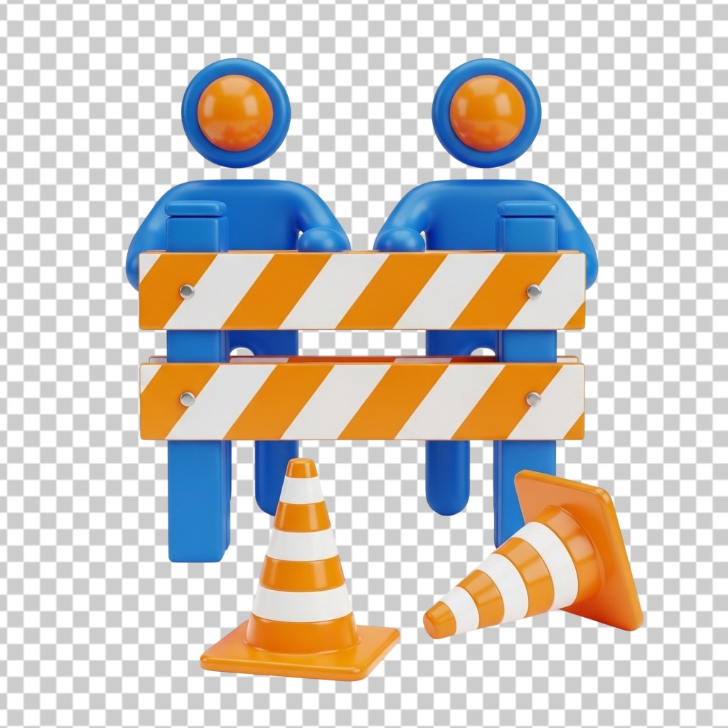 3D Road Construction Barrier with Traffic Cones PNG Transparent Background