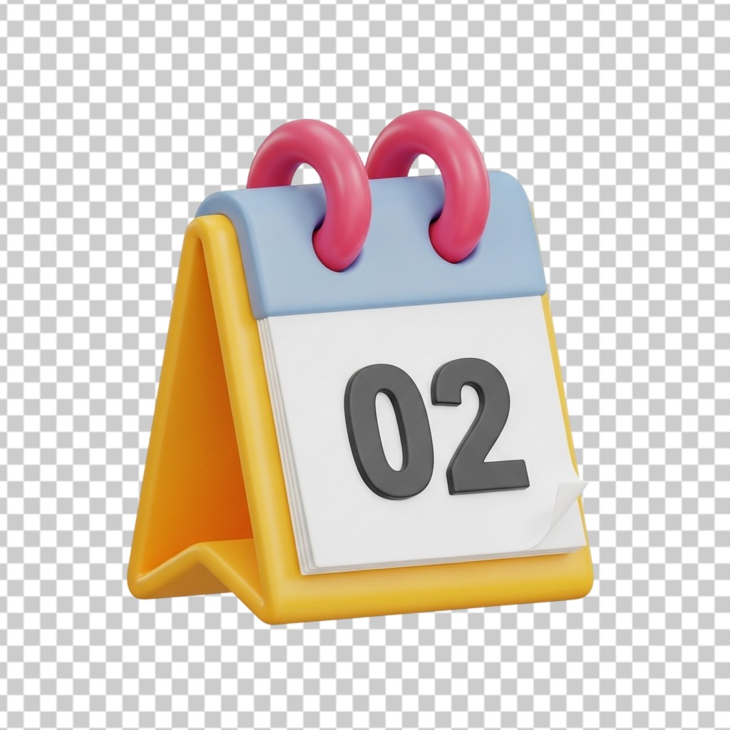 3D Desktop Calendar Icon Showing Date 02 PNG Transparent Background
