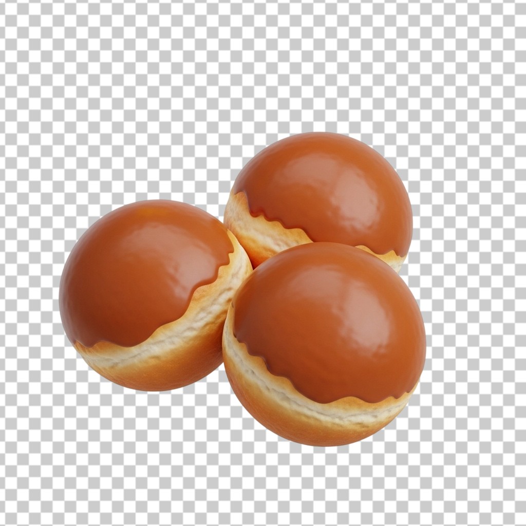 3D Freshly Baked Brown Bread Buns PNG Transparent Background