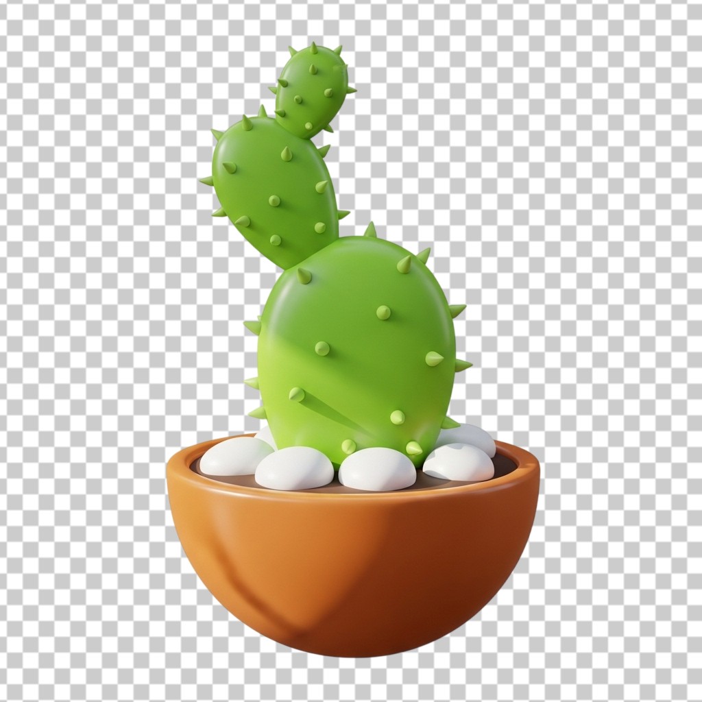 Green Cactus Plant in Brown Pot 3D Rendering PNG Transparent Background