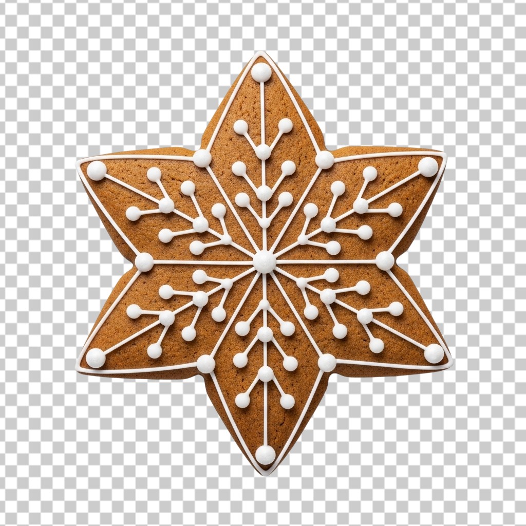 Star Shaped Gingerbread Christmas Cookie with White Icing Decoration PNG Transparent Background