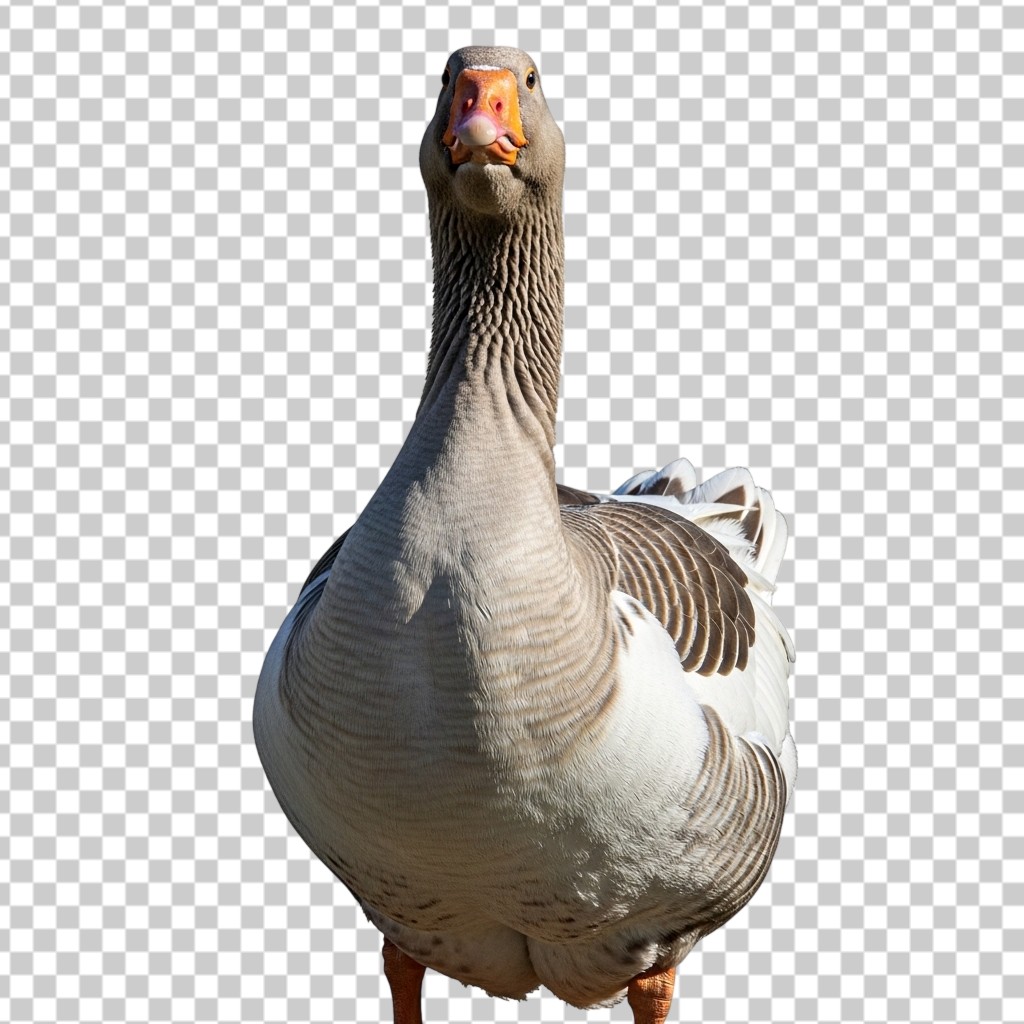 Domestic Gray and White Goose Standing Isolated PNG Transparent Background