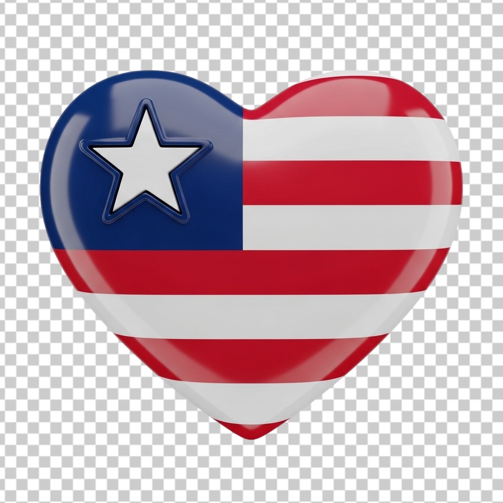 3D Heart Shaped Liberia National Flag with Glossy Finish PNG Transparent Background