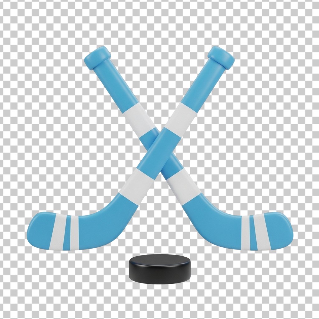 3D Ice Hockey Sticks and Black Puck PNG Transparent Background