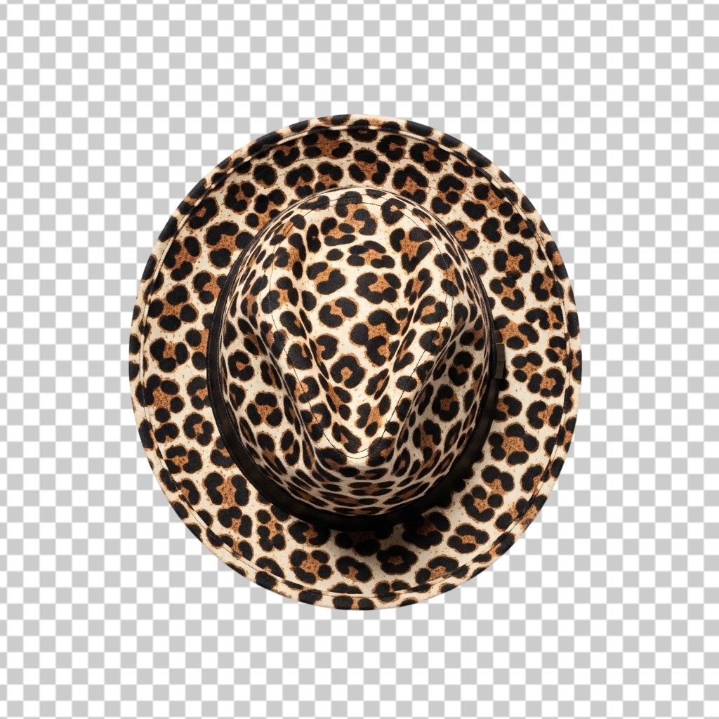Trendy Leopard Pattern Fedora Hat Top View PNG Transparent Background