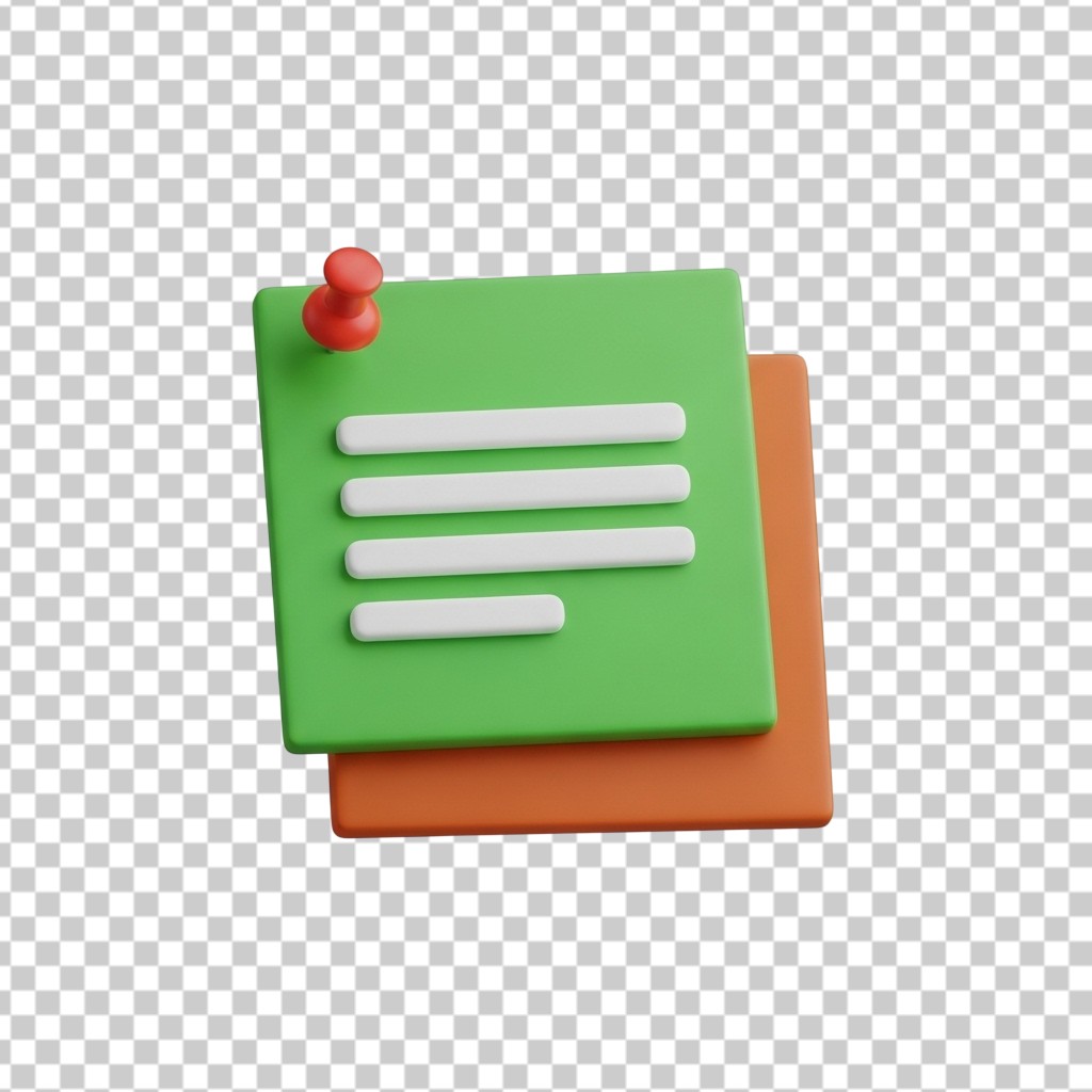 3D Stack of Colorful Sticky Notes with Red Push Pin PNG Transparent Background