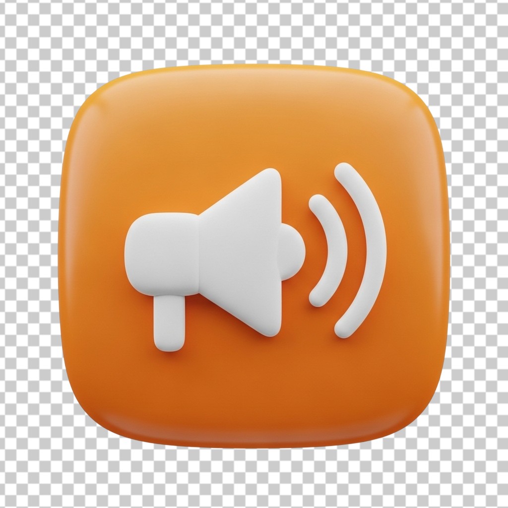 Megaphone Loudspeaker Notification Icon 3D Illustration PNG Transparent Background