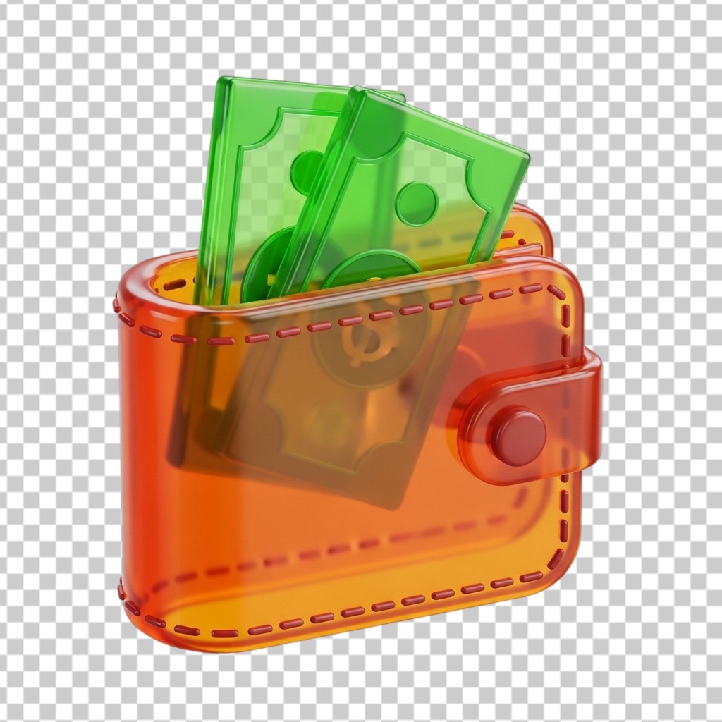 Leather Wallet with Cash Money Bills 3D Finance Icon PNG Transparent Background