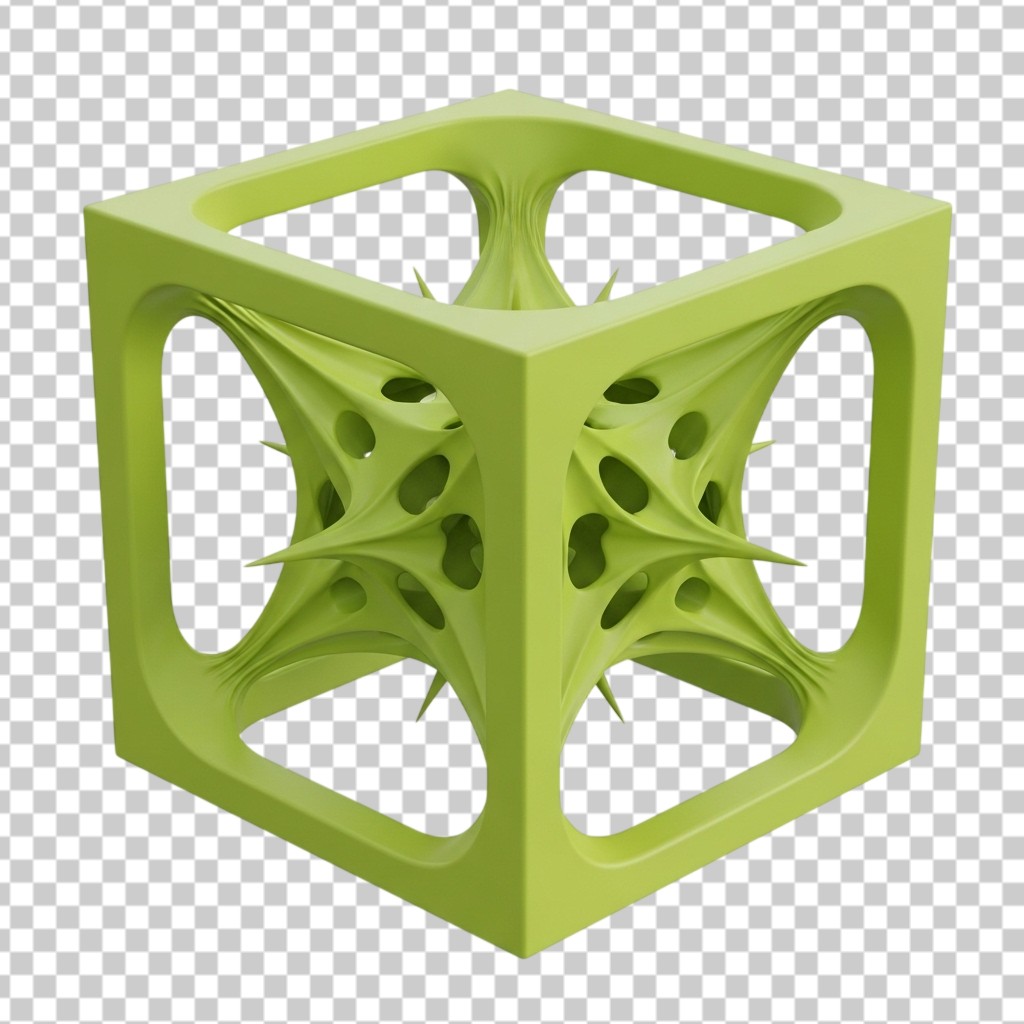 3D Abstract Green Wireframe Cube Shape Illustration PNG Transparent Background