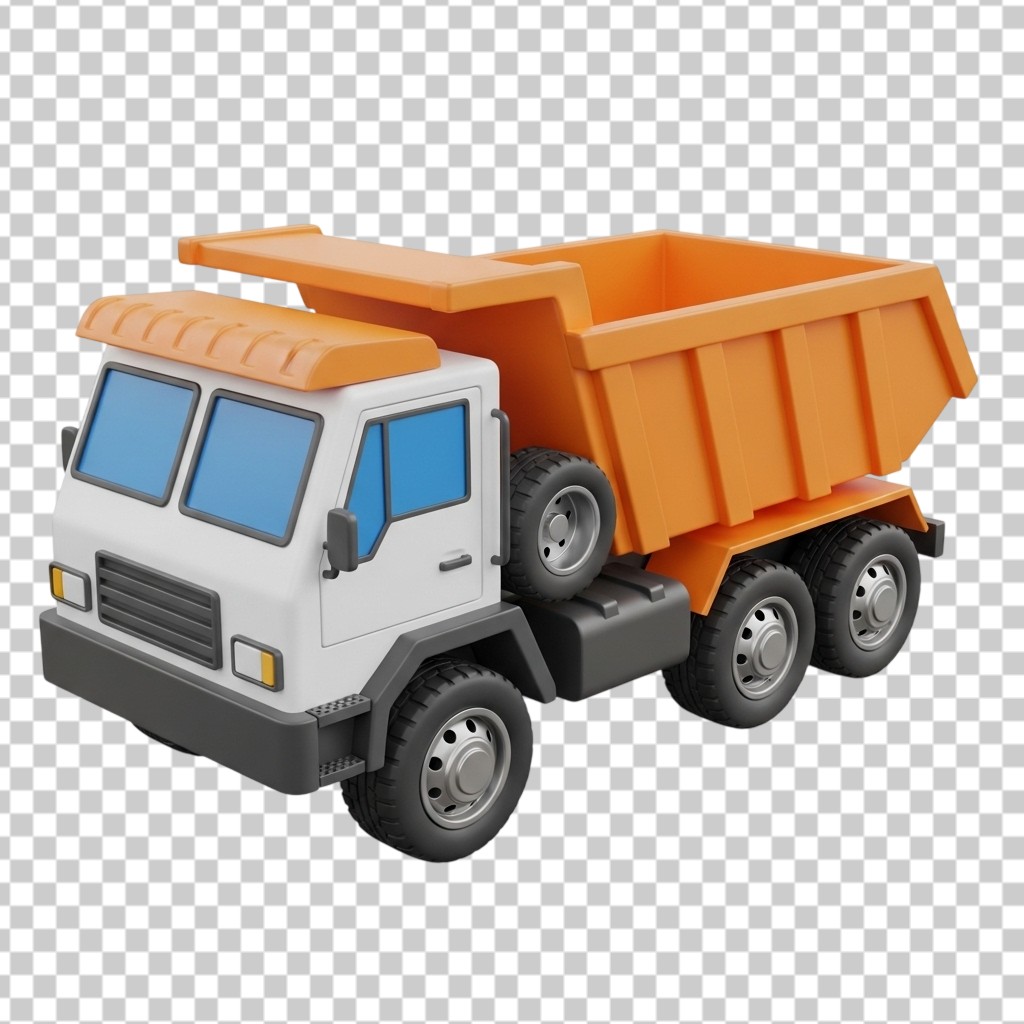 3D Orange Construction Dump Truck Vehicle Heavy Machinery PNG Transparent Background