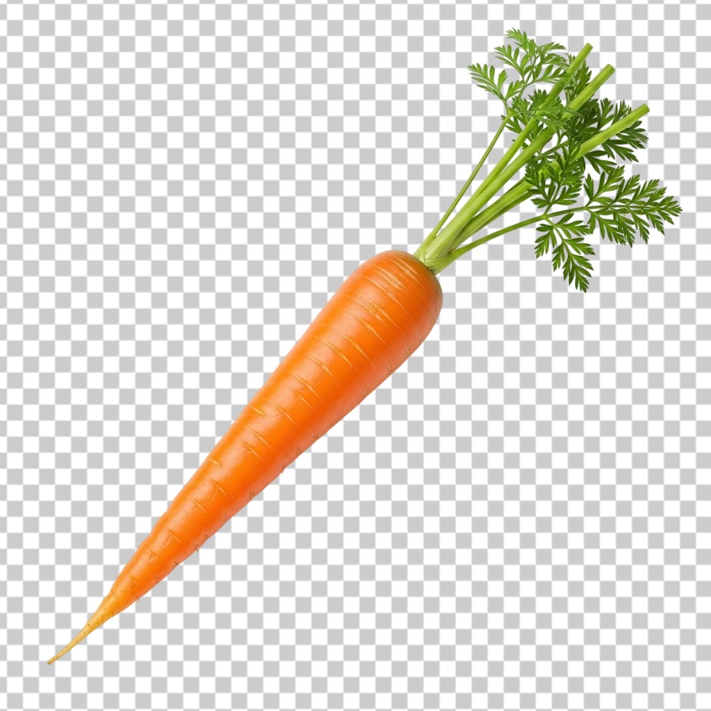 Fresh Whole Orange Carrot with Green Leaves PNG Transparent Background