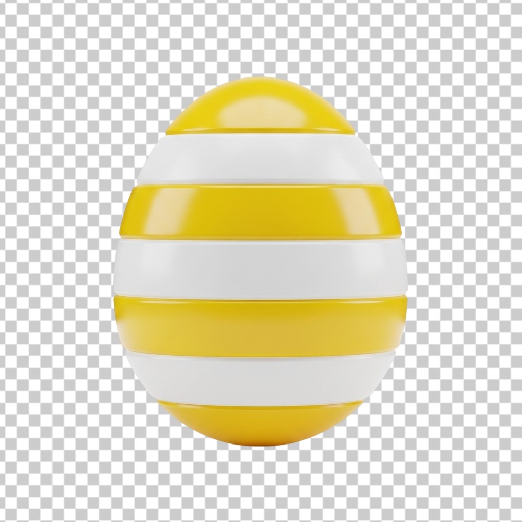 Yellow and White Striped Easter Egg 3D Decoration PNG Transparent Background