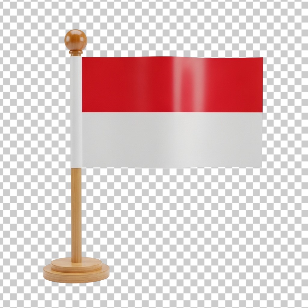 3D Indonesia National Flag on Wooden Stand PNG Transparent Background