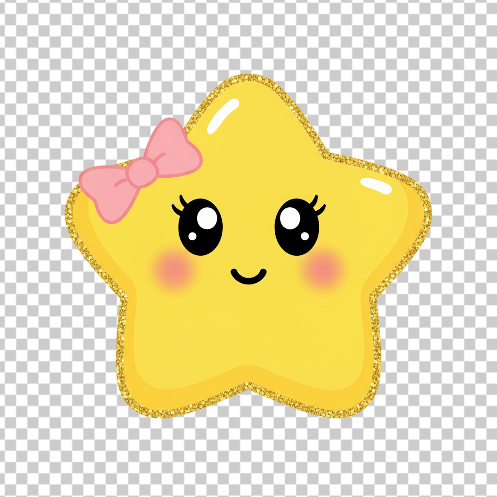 Cute Kawaii Yellow Star Character with Pink Bow PNG Transparent Background