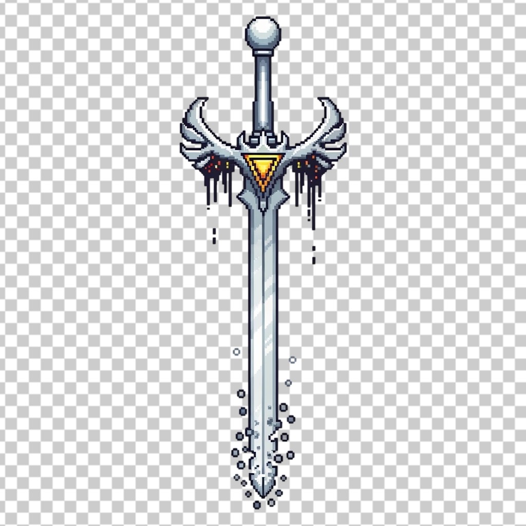 Intricate Fantasy Broadsword with Silver and Blue Engravings PNG Transparent Background