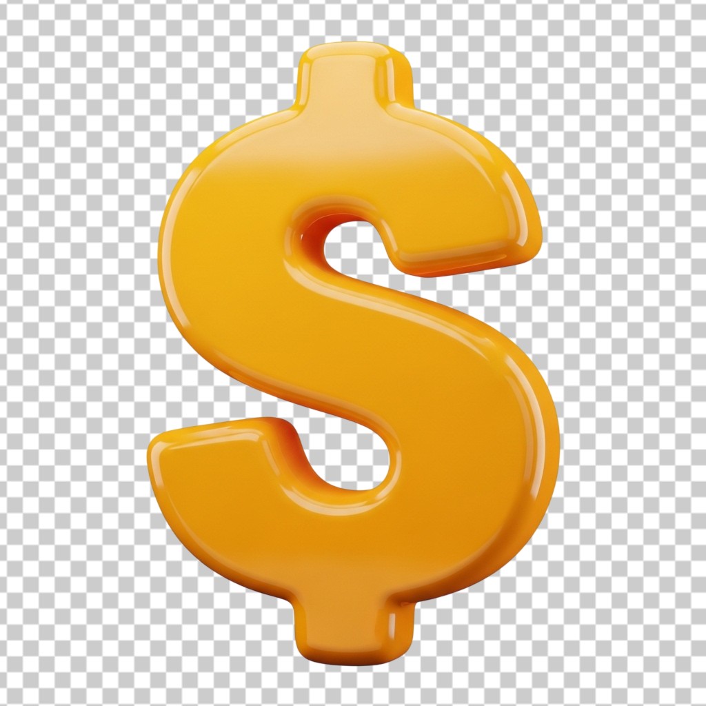 3D Glossy Orange Dollar Currency Symbol Financial Element PNG Transparent Background