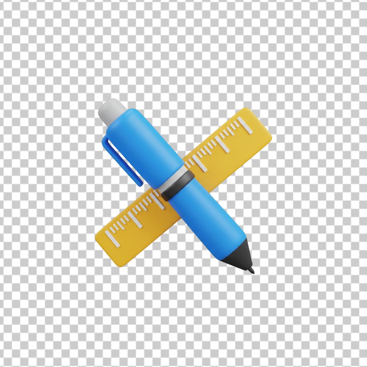 3D Crossed Pen and Ruler Engineering Tools PNG Transparent Background