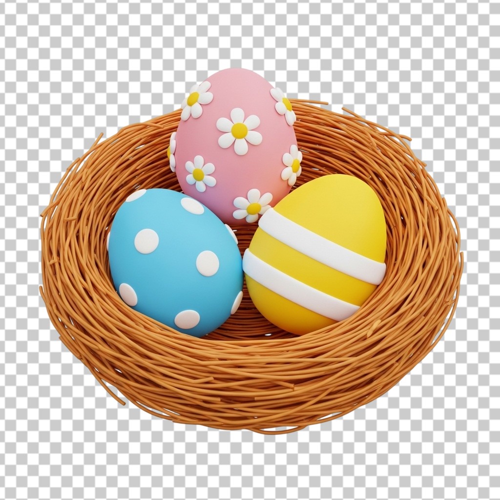 Easter Nest with Colorful Speckled Eggs 3D Festive Illustration PNG Transparent Background