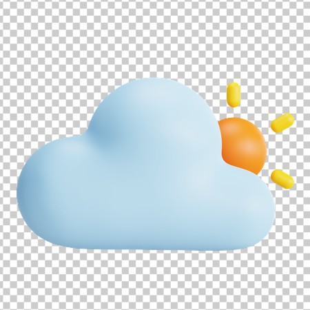 3D Weather Forecast Icon Blue Cloud with Bright Sun PNG Transparent Background