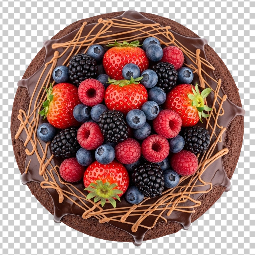Delicious Mixed Berry Chocolate Cake Top View PNG Transparent Background