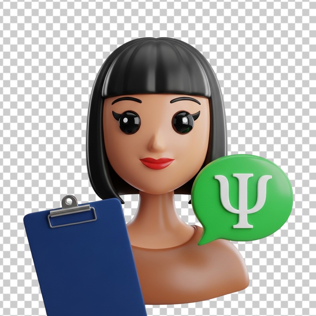 Female Professional Psychologist Character with Clipboard 3D PNG Transparent Background