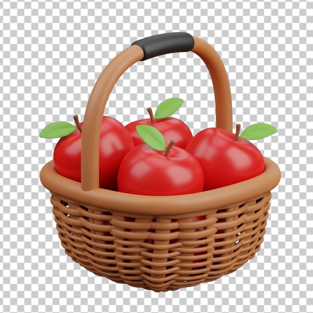 Wicker Basket Full of Red Apples 3D Nature Illustration PNG Transparent Background