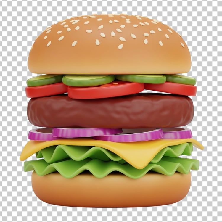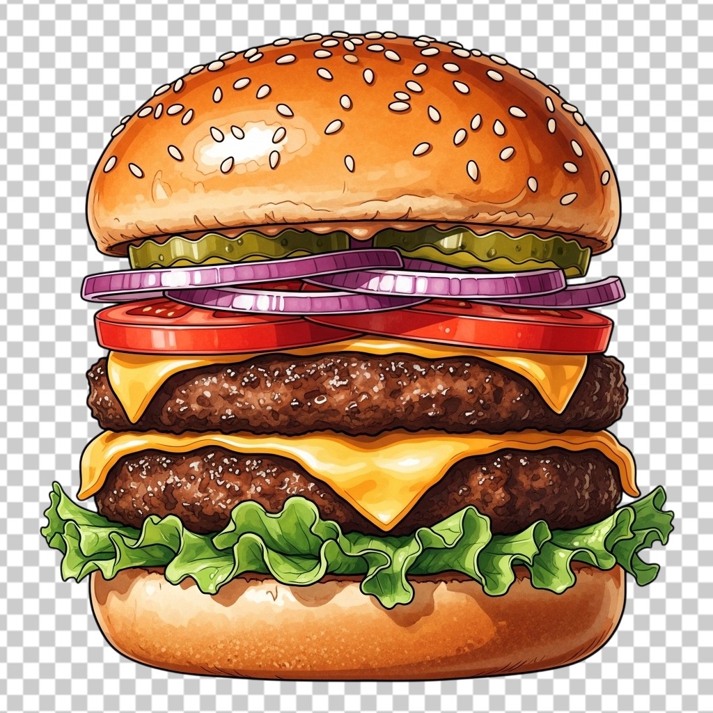 Tall Juicy Double Cheeseburger with Salad and Pickles PNG Transparent Background