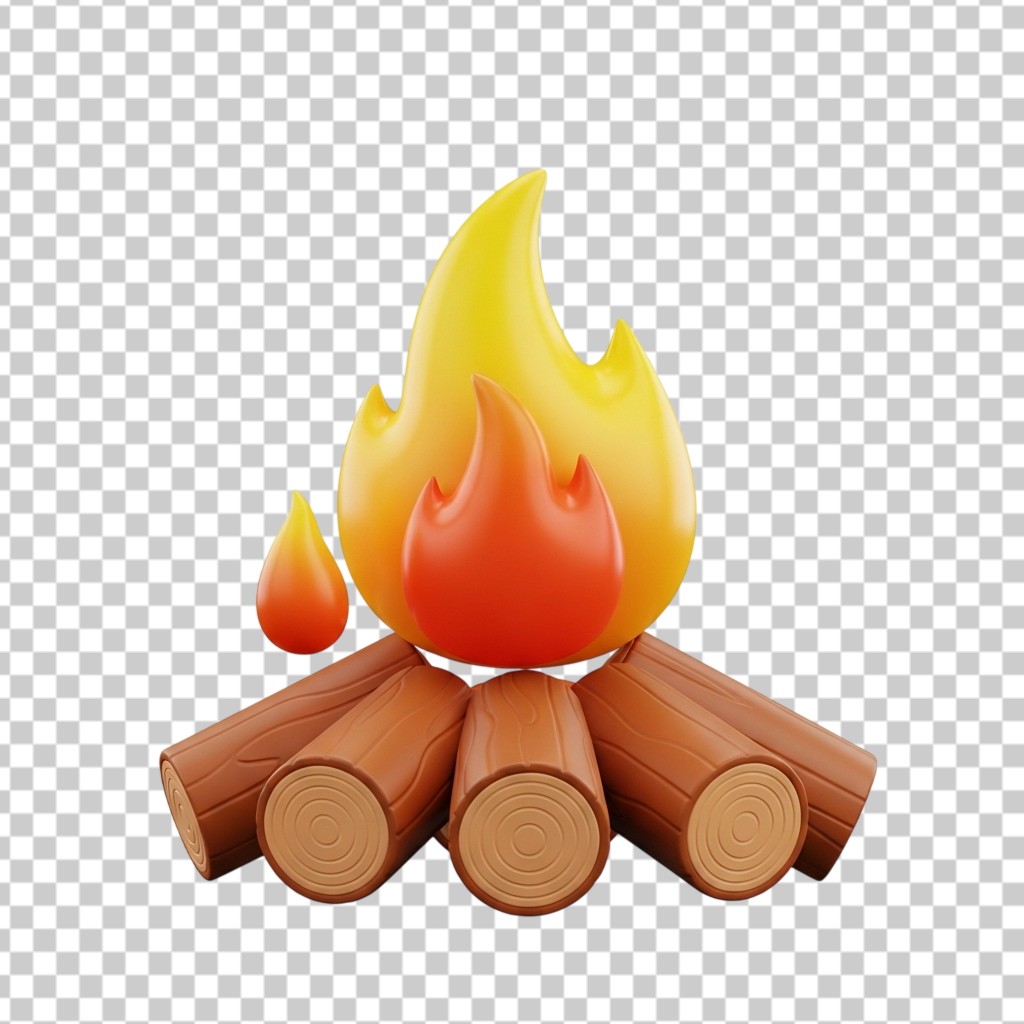 3D Burning Campfire with Wooden Logs for Outdoor PNG Transparent Background