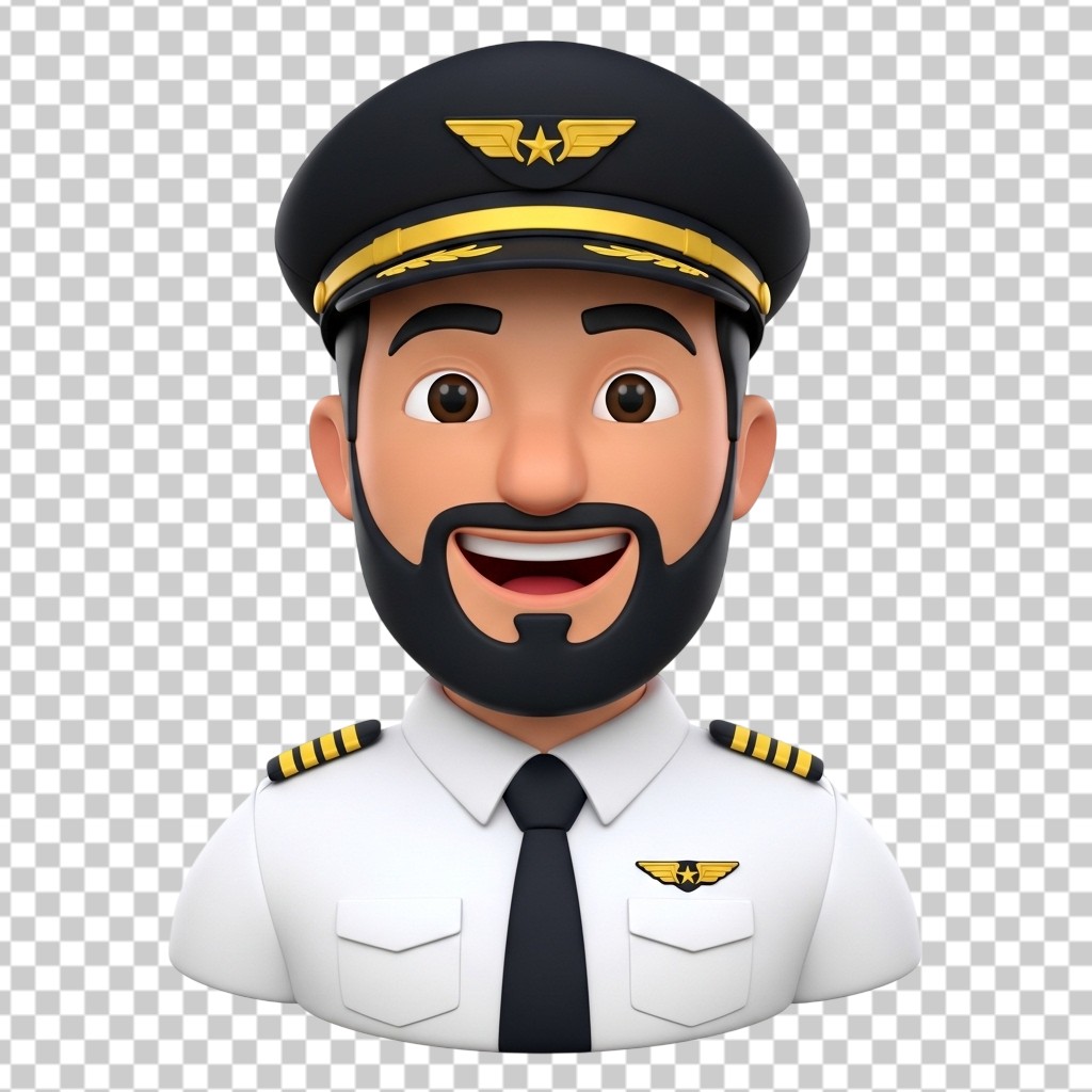 Friendly Airline Pilot Avatar Character in Uniform with Captain Hat PNG Transparent Background