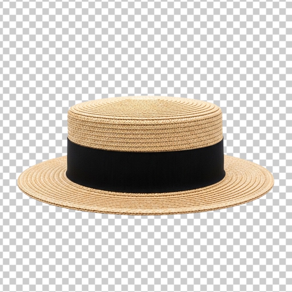 Classic Summer Straw Boater Hat with Black Ribbon PNG Transparent Background