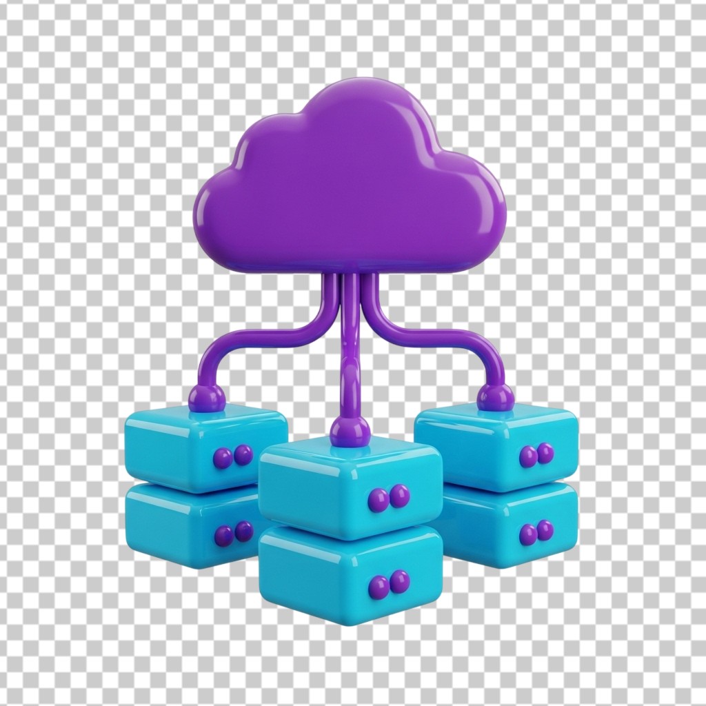 3D Cloud Computing Icon with Connected Data Servers PNG Transparent Background