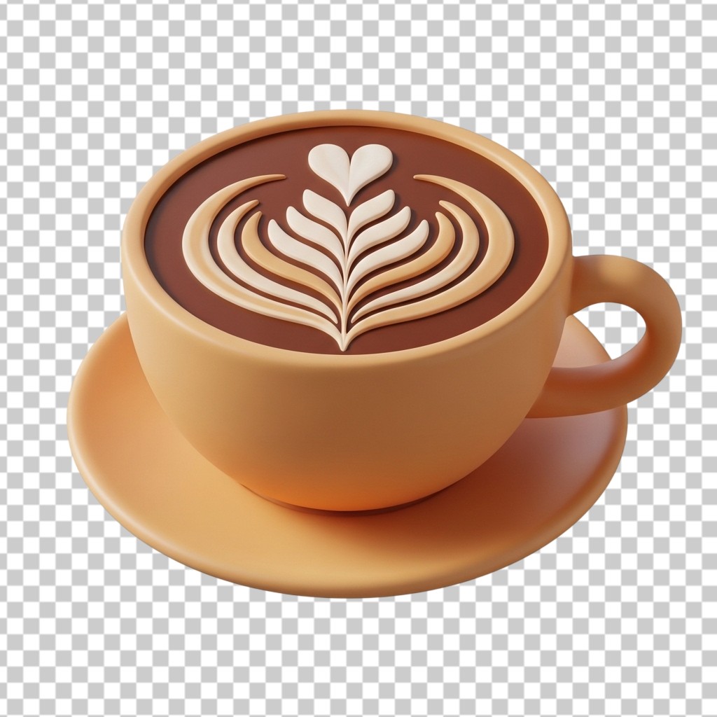 3D Hot Coffee Latte Art Cup PNG Transparent Background