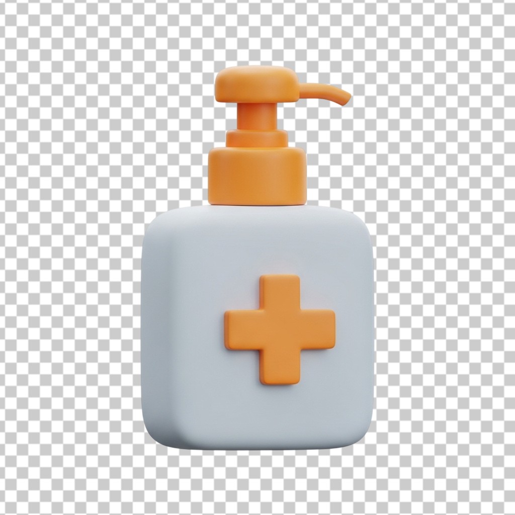 3D Hand Sanitizer Bottle with Orange Dispenser Medical Supply PNG Transparent Background