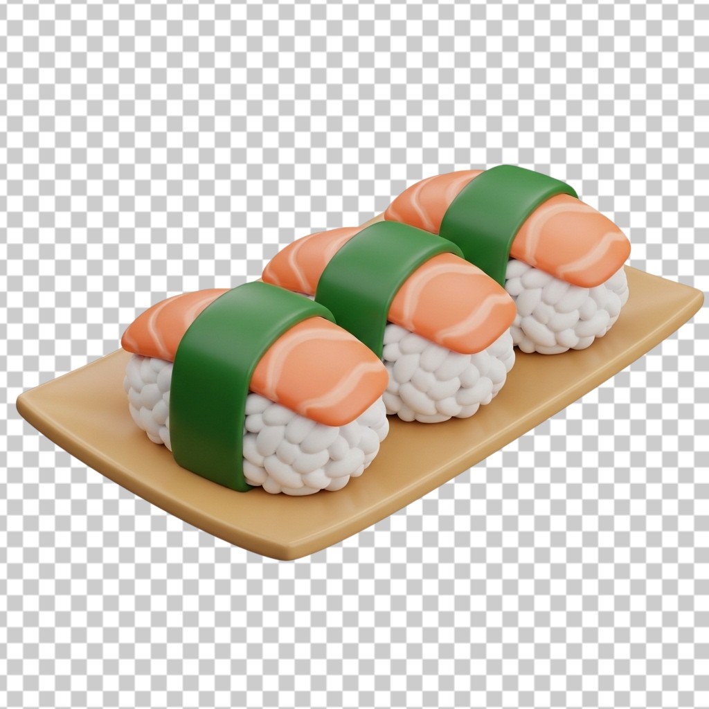 Fresh Sushi Rolls on Wooden Board 3D Illustration PNG Transparent Background