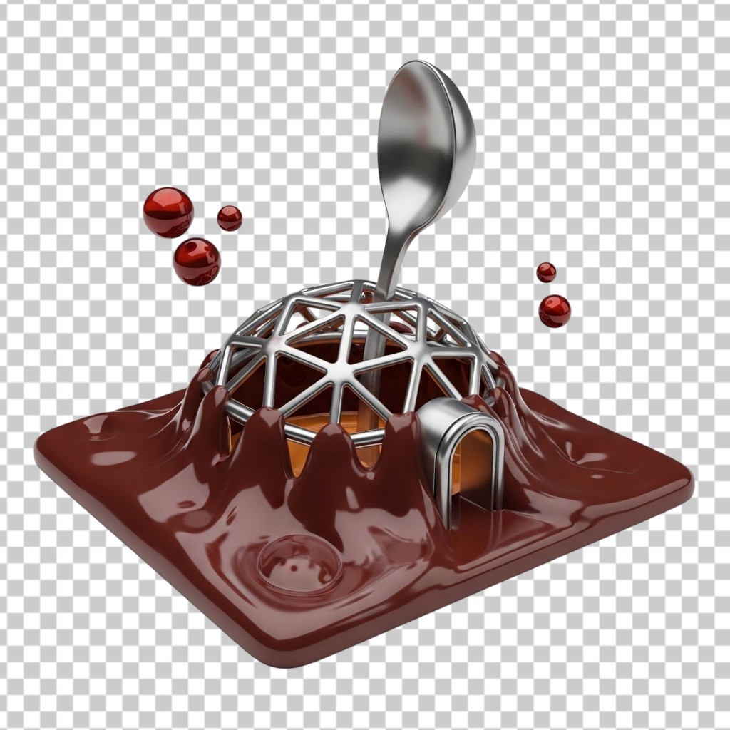 Melting Chocolate Igloo Dessert with Silver Spoon PNG Transparent Background