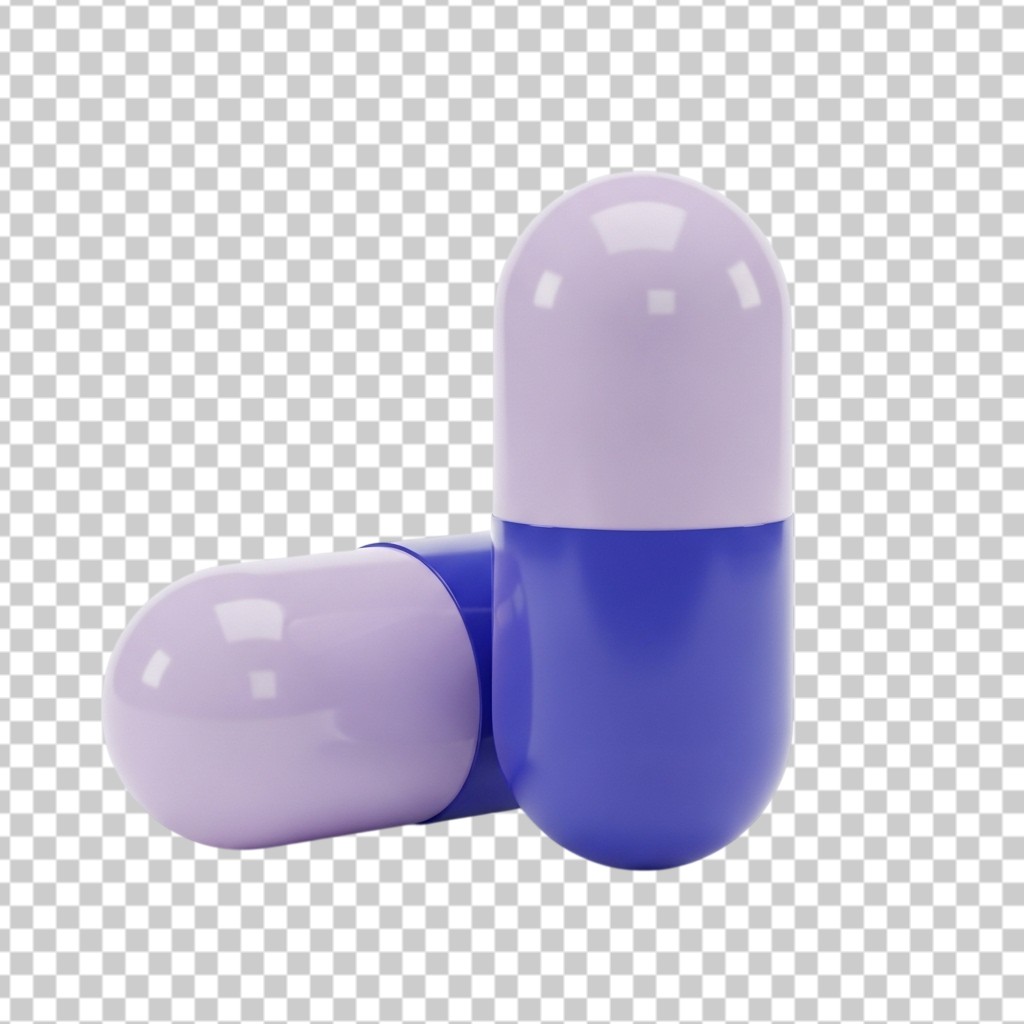 Purple and White Medical Capsules Pills 3D Illustration PNG Transparent Background