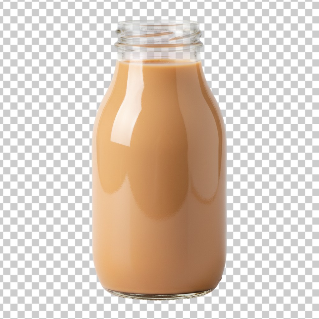 Small Glass Bottle with Creamy Caramel Milk PNG Transparent Background