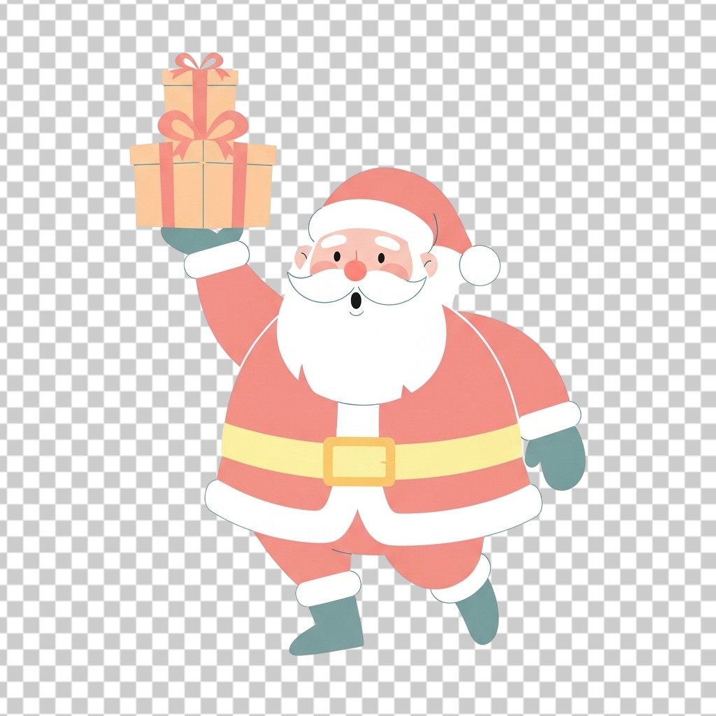 Cute Cartoon Santa Claus Holding a Gift Box PNG Transparent Background