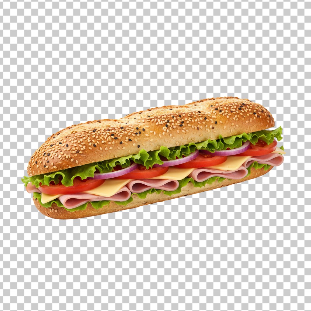 Long Italian Sub Sandwich with Deli Meats PNG Transparent Background