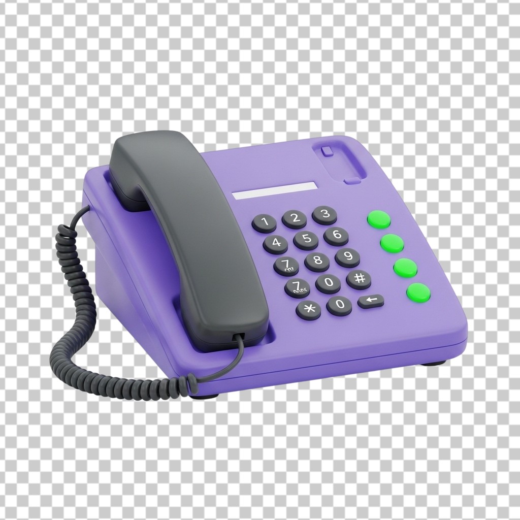 Purple Landline Telephone Gadget with Receiver and Keypad PNG Transparent Background