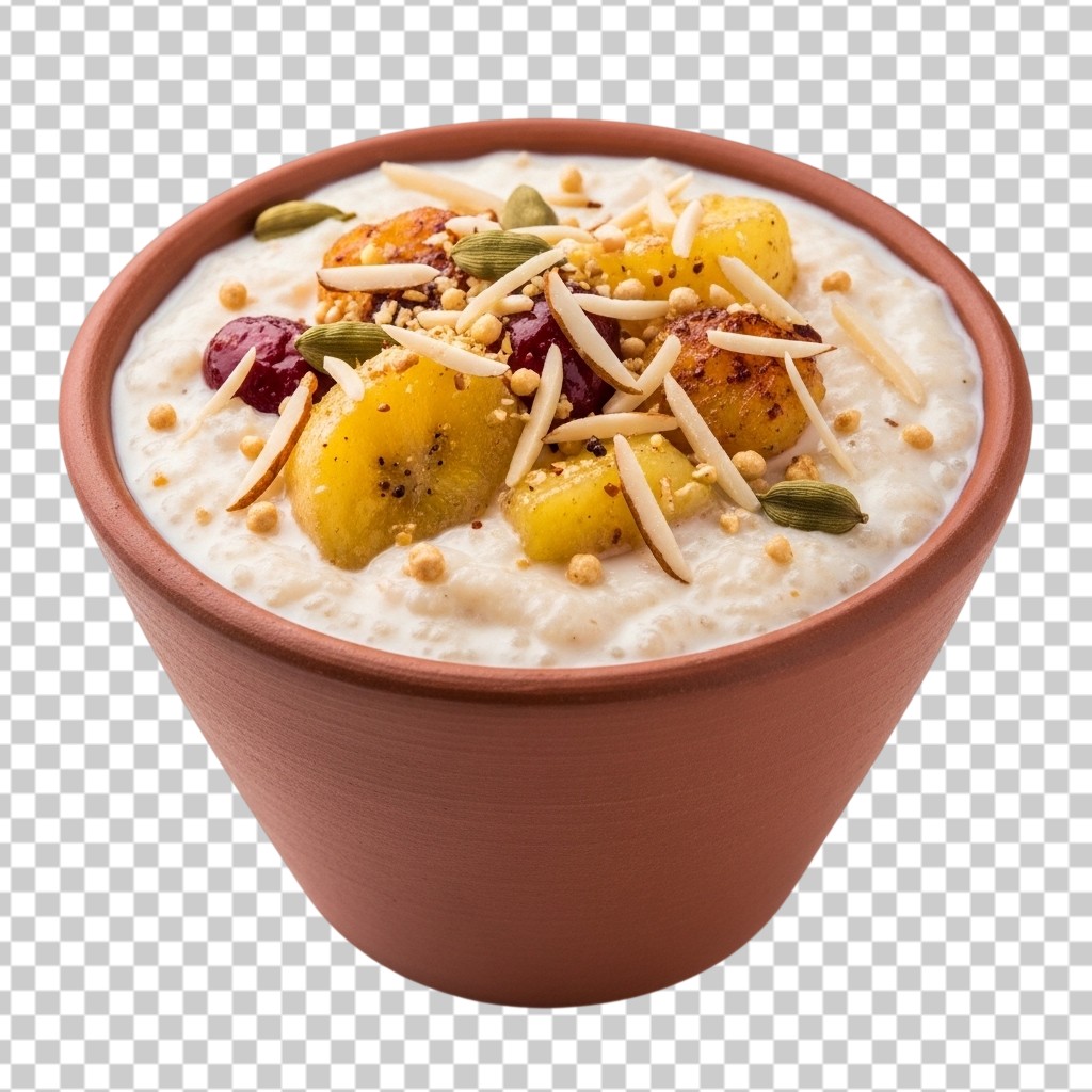 Bowl of Healthy Oatmeal Breakfast with Banana and Nuts PNG Transparent Background